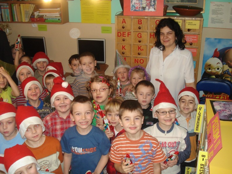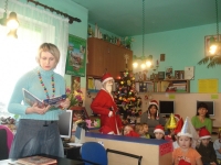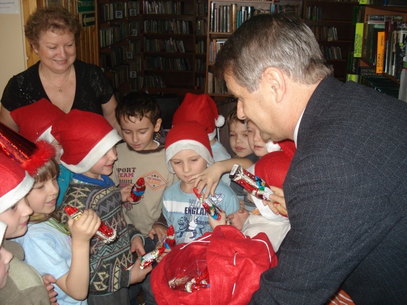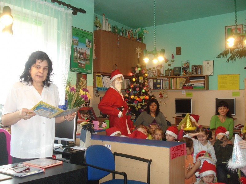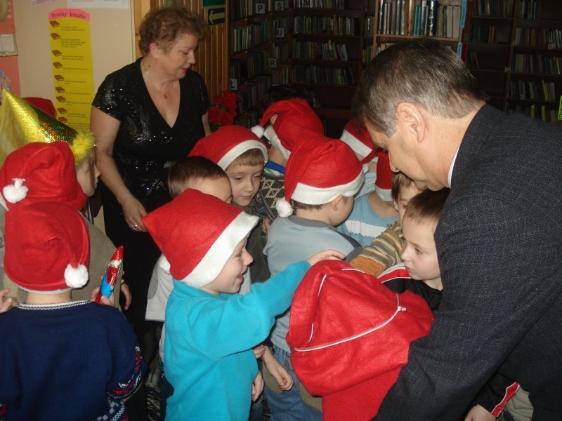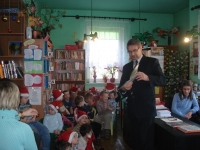 W dniu 4 grudnia br. w Gminnej Bibliotece Publicznej w Gilowicach odbyły się dwa spotkania Mikołajkowe.Najpierw o godzinie 10-tej do Biblioteki przyszli sześciolatkowie wraz z Paniami wychowawczyniami oraz Panią Dyrektor Przedszkola w Gilowicach.Tematem przewodnim naszego spotkania był Mikołaj i Święta Bożego Narodzenia.Po przywitaniu wszystkich przybyłych dzieci i dorosłych czytanie rozpoczęła Dyr. Gminnej Biblioteki Publicznej Wanda Hajok.”Pracowity dzień Świętego Mikołaja” przeczytała Gabriela Kolonko- Dyr.Gminnego Ośrodka Kultury , a następnie o narodzeniu Jezusa w stajence Betlejemskiej opowieść przeczytała Grażyna Kastelik- Dyr.Przedszkola.Na zakończenie wiersz „Rok i bracia miesiące” przeczytał Wójt Gminy Gilowice – Pan Leszek Frasunek.Po krótkiej dyskusji swój „pracowity dzień” rozpoczął /w zastępstwie Mikołaja/ Pan Wójt,który wszystkim uczestnikom spotkania rozdał czekoladowe Mikołaje.Dużą paczkę,w której były piękne książki,gra i inne słodkości dla dzieci na ręce Pani Grażyny Kastelik wręczyła Wanda Hajok.Dzieci przed wyjściem zobaczyły jak rozmieszczone są książki w Bibliotece oraz zabrały dla rodziców informacje na temat Biblioteki i jej zbiorów ,a także prośbę o codzienne czytanie dzieciom książek.Na następne spotkanie z cyklu „Cała Polska czyta dzieciom” umówiliśmy się w styczniu.