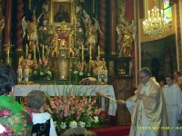W kościele o. Proboszcz celebrował uroczystą ofiarę mszy świętej i wygłosił okolicznościową homilię do licznie zgromadzonych rolników oraz pozostałych zgromadzonych na modlitewnym dziękczynieniu. Przy jednym z bocznych ołtarzy można było obejrzeć przygotowaną wystawę płodów rolnych hojnie wydanych przez naszą ziemię. Po mszy św. w Sali Domu Ludowego odbyło się spotkanie integracyjne rolników i gospodyń wiejskich z władzami gminnymi reprezentowanym przez Wójtów Gmin Gilowice i Świnna, radnych i sołtysa wsi Rychwałd. Na uroczystość przybyli również dyrektorzy szkół i przedszkola, Gminnego Ośrodka Kultury w Gilowicach.