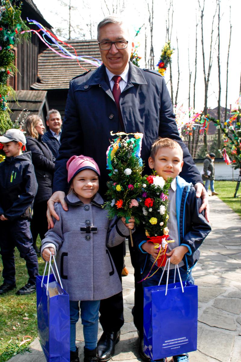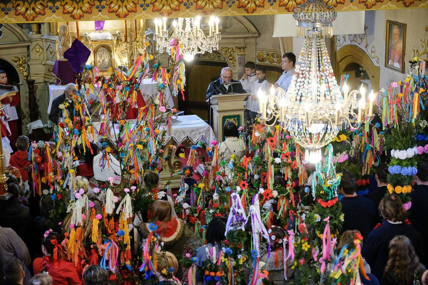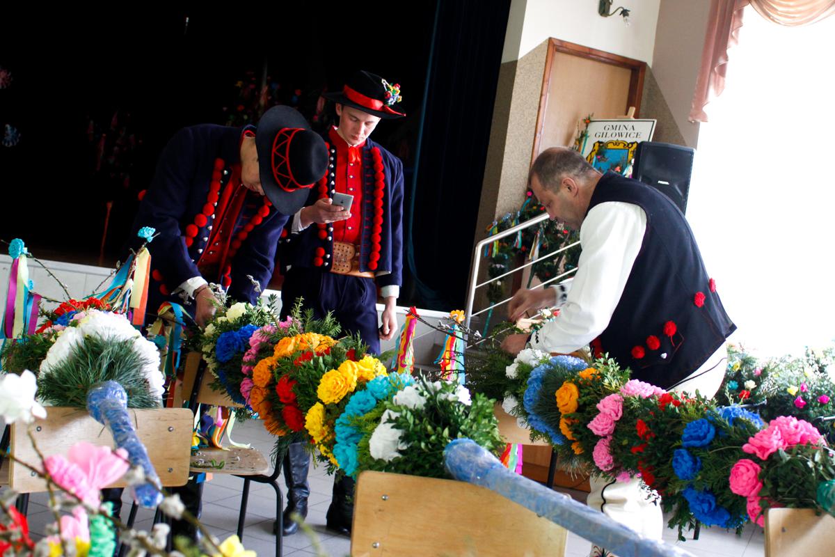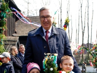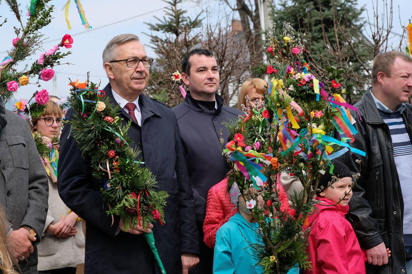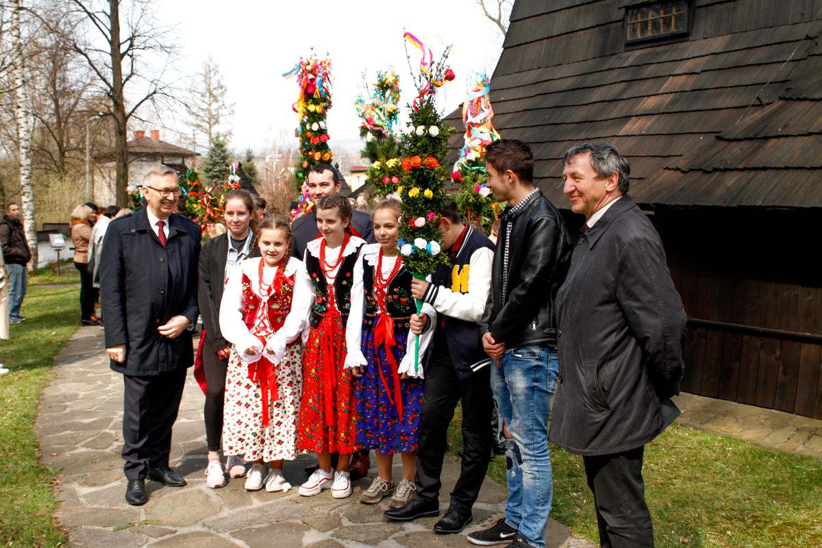 Jak co roku, nieprzerwanie od 26 lat w Gilowicach, przeprowadzono konkurs na TRADYCYJNĄ PALMĘ WIELKANOCNĄ. Drewniany gilowicki kościółek, po brzegi wypełnił się palami, a w powietrzu unosił się cudny zapach zielonych roślin i bazi, z których zostały one przygotowane. Jakąż radość sprawia organizatorom widok mieszkańców, gości, całych rodzin oraz górali w tradycyjnych strojach, uczestniczących, w tym jakże ważnym dla tradycji naszego regionu wydarzeniu. Wśród tłumu laureatów konkursu pojawili się również wspaniali goście Pan Stanisław Szwed Sekretarz Stanu w Ministerstwie Rodziny, Pracy i Polityki Społecznej oraz Dyrektor Regionalnego Ośrodka Kultury w Bielsku Białej Pan Lesław Werpachowski wraz z małżonką, których powitali Pan Krzysztof Okrzesik Wójt Gminy Gilowice oraz Pan Mirosław Pyclik Przewodniczący Rady Gminy Gilowice.