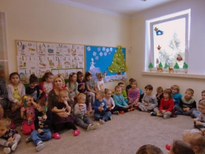 Po raz pierwszy w dziejach naszej placówki przedszkolaki wzięły udział w spotkaniu dwóch pokoleń : rodziców, dziadków. Towarzyszył na śpiew polskich tradycyjnych i góralskich kolęd, pastorałek, jak i nowoczesnych aranżacji. Wtórował nam akompaniament instrumentów : harmonii, gitary, klarnetu.