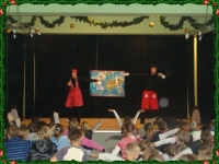 W grudniowy poranek w sali Gminnego Ośrodka Kultury jak co roku, odbyło się spotkanie ze Świętym Mikołajem Zanim jednak przyszedł czas na prezenty dzieci czekała niespodzianka. Licznie zgromadzona publiczność z Przedszkola i Szkoły Podstawowej z Gilowic oraz uczniów najmłodszych klas z Rychwałdu, przeniosła się w bajkowy „Świat Walta Disneya”. Wraz z Mickim i Minii nasi najmłodsi zwiedzili „cały świat” poszukując Mikołaja. Czynne uczestnictwo w owych wędrówkach spowodowało, że dzieci wspaniale się bawiły. Spotykając Świętego publiczność została nagrodzona słodkościami.