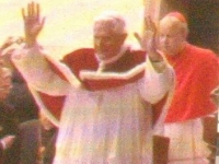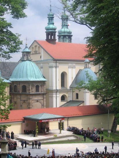 Pierwsze bliskie spotkanie z Benedyktem XVI. Pielgrzymka z Gilowic udała się do Kalwarii Zebrzydowskiej. Strome zbocza otaczające świątynię zapełniły się ludźmi, których sylwetki otulone w kolorowe palta przeciwdeszczowe niespokojnie przemieszczały się z miejsca na miejsce już od samego rana.I stało się! Poruszenie wśród zebranych. Nadjechały samochody. Otworzyły się drzwi, z których wyłoniła się postać Papieża. Podniósł dłonie w radosnym powitaniu i z uśmiechem na twarzy powitał Polaków. Cała Kalwaria witała Gościa. Wspólna modlitwa i te kilka słów skierowanych do pielgrzymów, na które każdy czekał z niecierpliwością, były niczym woda dla spragnionych lub jak silne ramię dla potrzebujących wsparcia.