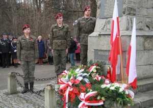 Po zakończeniu uroczystości kościelnych nastąpiło przejście pod pomnik poświęcony Poległym za Wolność i Ojczyznę, przy którym wartę honorową pełnili uczniowie klasy wojskowej Zespołu Szkół Agrotechnicznych i Ogólnokształcących z Moszczanicy. Wspólnie odśpiewany hymn państwowy oraz wystąpienie Wójta Gminy pana Leszka Frasunka podkreśliło rangę podniosłej chwili upamiętniającej bohaterów naszej polskiej wolności. U stóp pomnika przybyłe delegacje złożyły pamiątkowe wiązanki i kwiaty od: ks. biskupa Tadeusza Rakoczego i władz kościelnych naszej parafii, władz samorządowych Gminy Gilowice na czele z Wójtem i Przewodniczącym Rady Gminy, OSP Gilowice, OSP Rychwałd, Gminnego Koła Pszczelarzy w Gilowicach oraz Zespołu Szkół w Gilowicach.