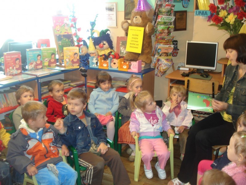 Dzieci zobaczyły jak ułożone są książki w Bibliotece,ile jest książek,dowiedziały się co trzeba zrobić,by zostać czytelnikiem Biblioteki.Na zakończenie spotkań dzieci otrzymywały słodkości i drobne upominki.Efektem spotkań są prace plastyczne pod tytułem „Nasza Biblioteka”.W spotkaniach wzięło udział ok.200 dzieci.