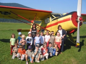 przydzielił nam przewodników młodego pilota i pilotki, którzy pokazali nam hangary, a w nich szybowce i samoloty. Dzieci miały okazję wejść do kabin samolotu i szybowca, a nawet „na sucho” poruszać dźwignią i w prawo i w lewo, oraz zobaczyć jak działają przyrządy pomiarowe.