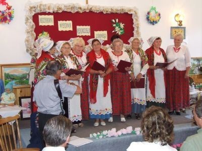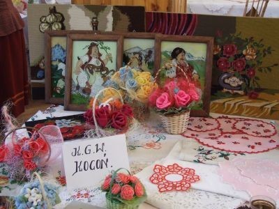 Mogliśmy podziwiać całą gamę różnych wyrobów rękodzielniczych, począwszy od bibułkowych kwiatów poprzez hafty, koronki i rzeźby do obrazów malowanych różnymi technikami przez artystów ludowych oraz wiele innych bardzo ciekawych form twórczości ludowej. W części artystycznej wystąpił chór Koła Gospodyń Wiejskich ze Ślemienia.